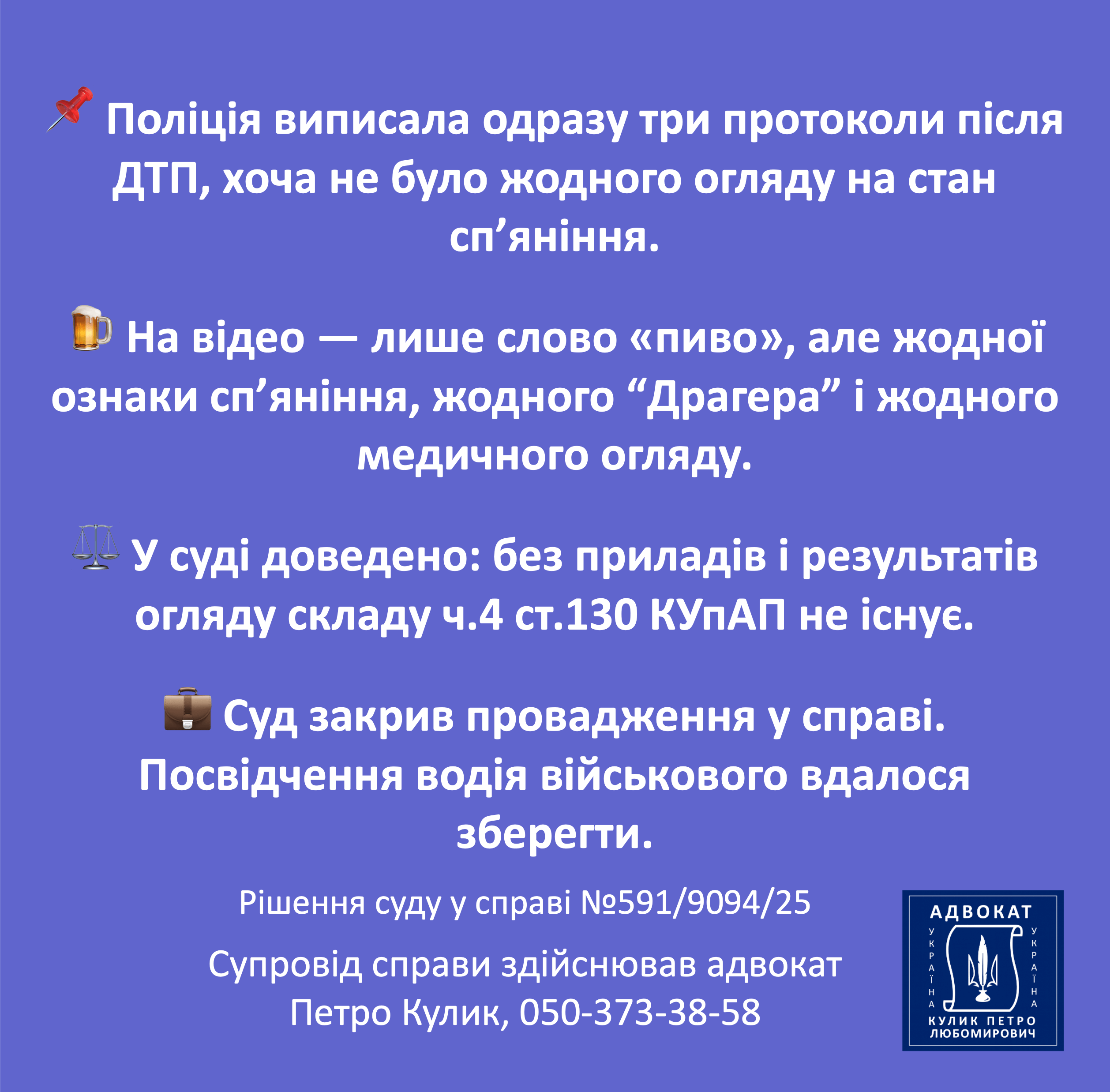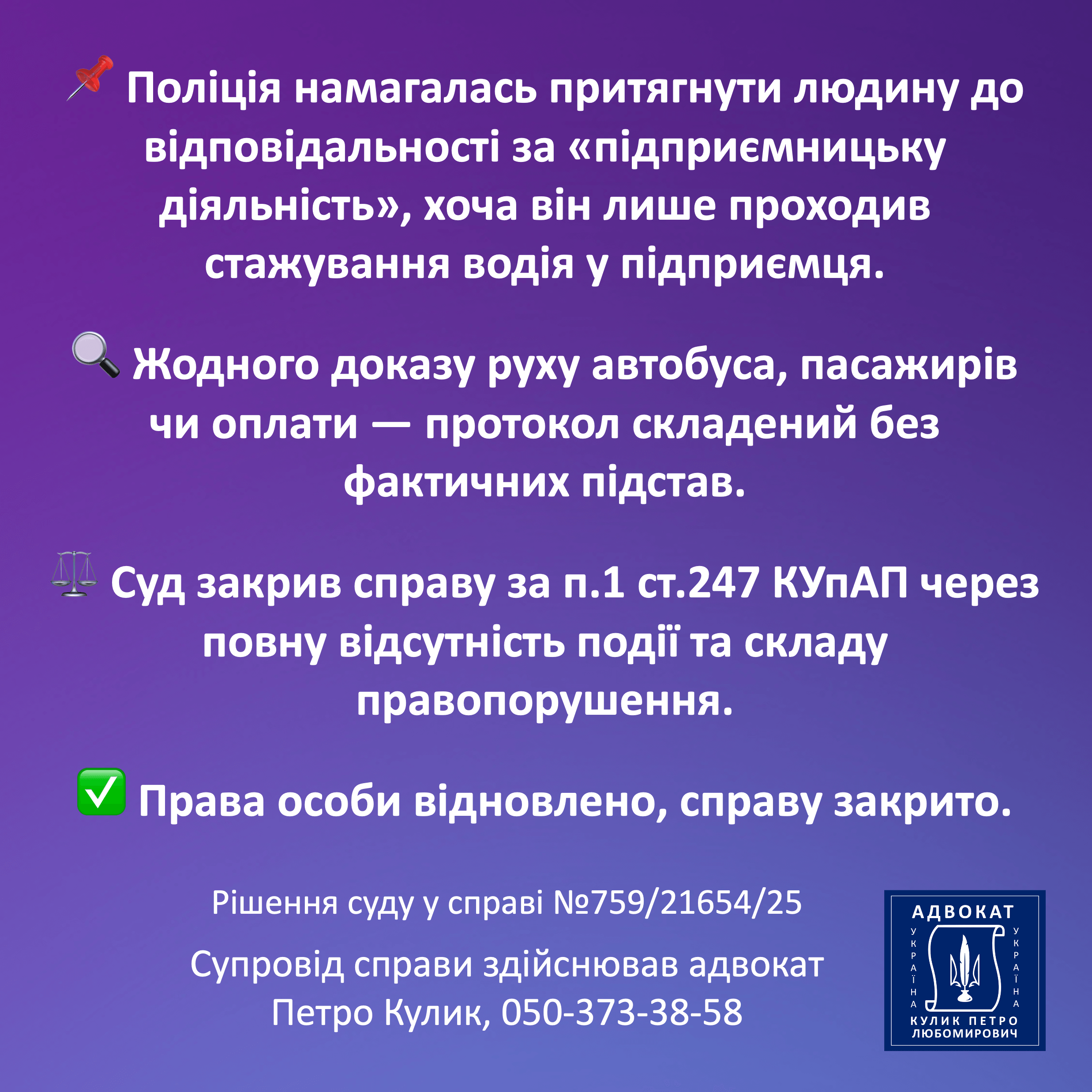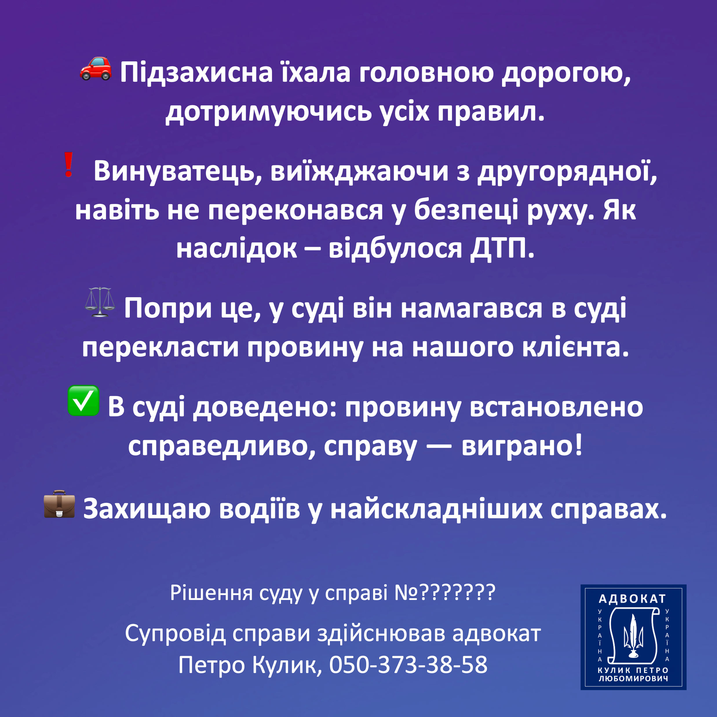 Клієнти орієнтуються на реальні результати, а не на загальні обіцянки. Публікація виграних справ демонструє, що захист здійснюється на високому професійному рівні. Кожне рішення підтверджує здатність формувати сильну позицію і відстоювати її у суді. Це створює об’єктивне уявлення про компетентність адвоката. Реальні результати залишають найбільш переконливе враження для тих, хто потребує юридичної допомоги.